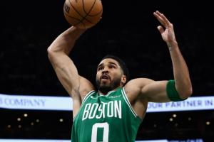 本场比赛,塔图姆出战27分钟,前6投全丢,但此后顶级调整连进四球连得9分,全场他16中6拿到15分12篮板7助攻1抢断,正负值+20!