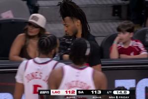 GIF-瓦塞尔推人进攻犯规~!!!马刺提前叫了暂停!!